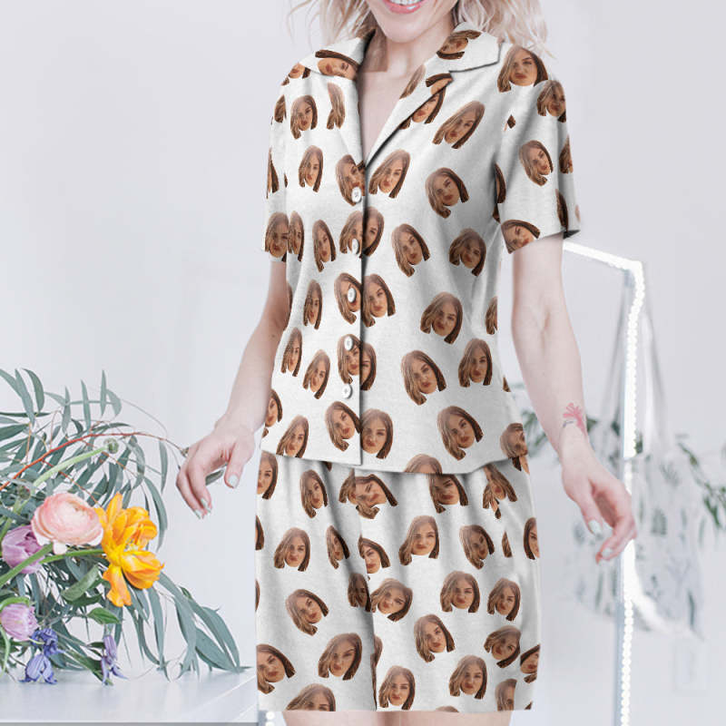 Custom Face Short Sleeved Pajamas Personalised Women's Sleepwear Gifts For Her