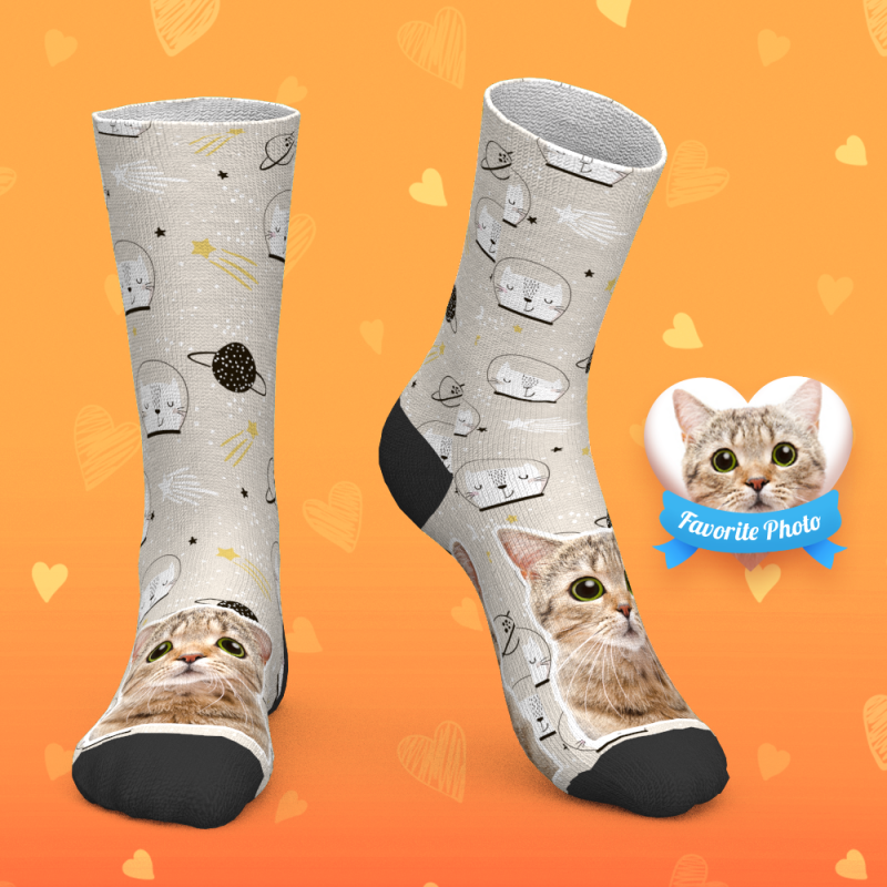 Custom Face Socks Add Pictures And Name - Cute Full Body Kitten