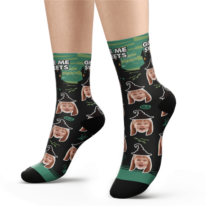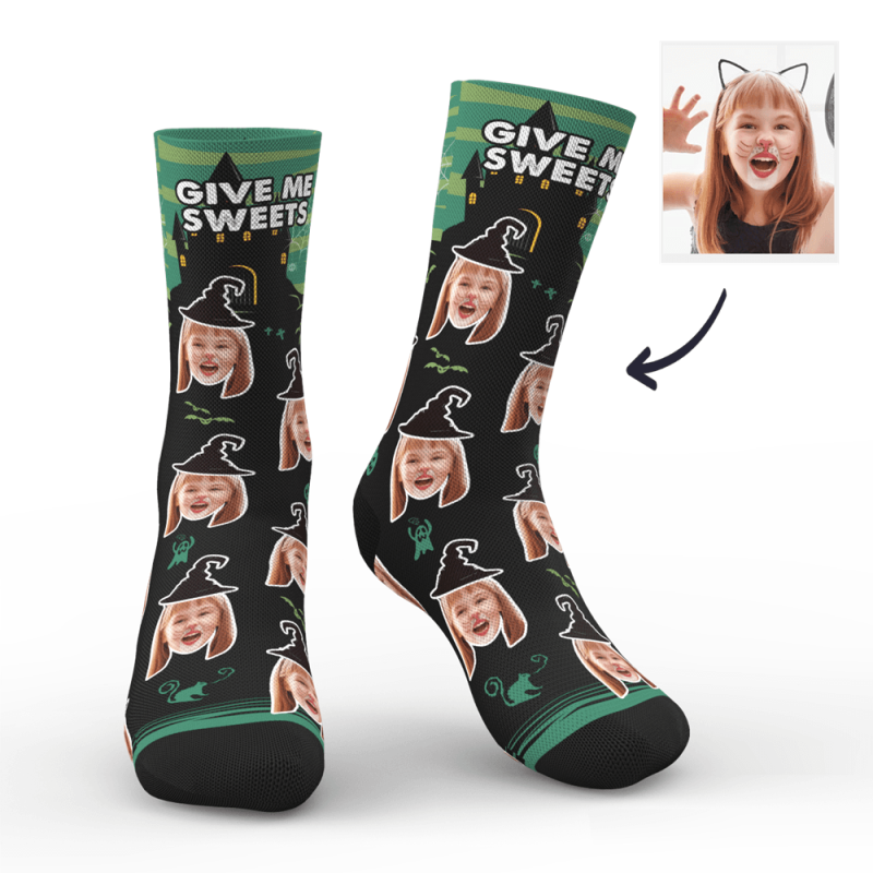 A cute pair of Halloween Socks with your faces on! Just upload a photo and we'll cut around their faces and add them to our Halloween Socks.