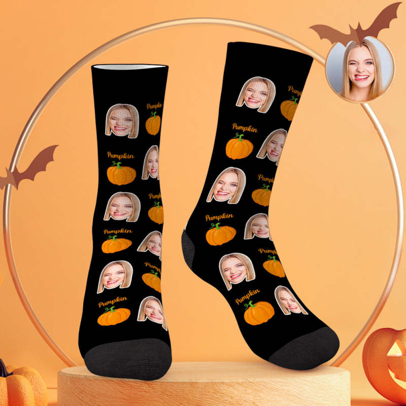 Custom Face Socks Personalized Photo Halloween Black Socks Pumpkin