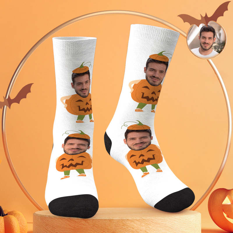 Custom Face Socks Personalized Photo Halloween White Socks Funny Pumpkin