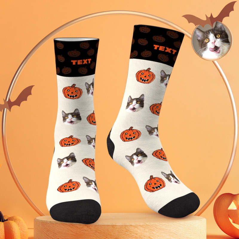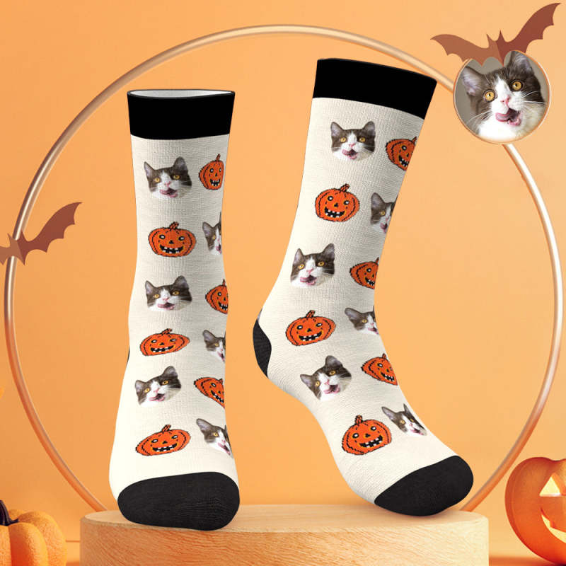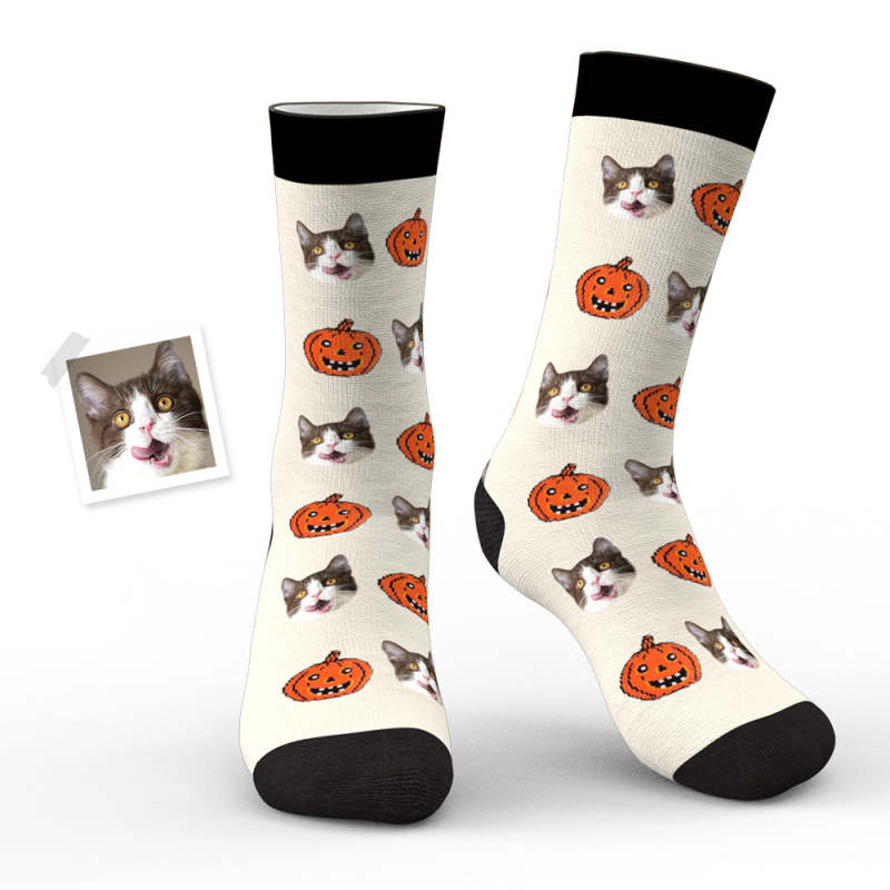 Custom Face Socks Personalized Photo Halloween White Socks Pumpkin
