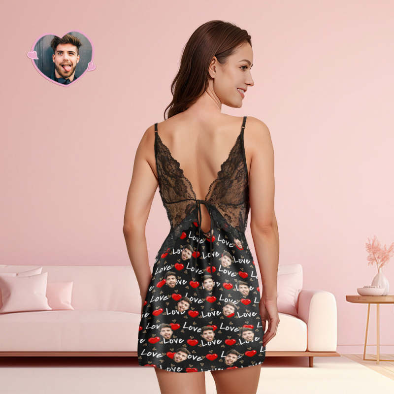 Custom Face Women Lace Sleepwear Love-filled Personalised Photo Nightwear Valentine's Day Gift