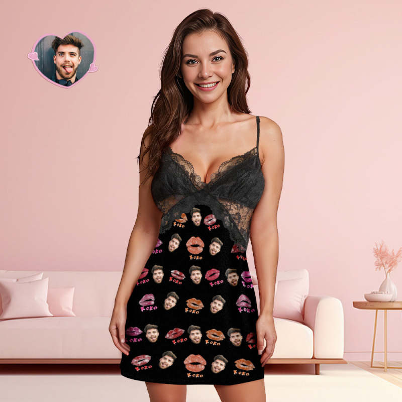 Custom Face Women Lace Sleepwear XOXO Personalised Photo Nightwear Valentine's Day Gift