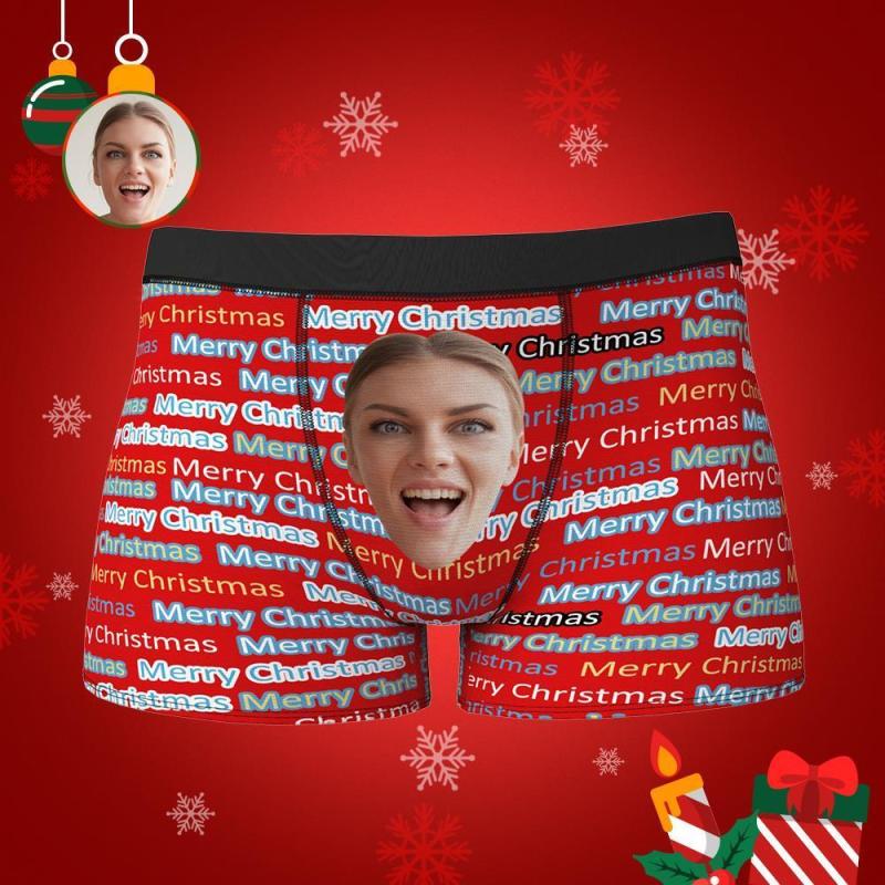 Custom Funny Face Boxers Shorts Merry Christmas Personalised Photo Underwear Christmas Gift for Men