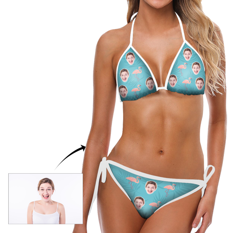 Custom Head Photo Flamingo and Blue Background Bikini Sexy Suit
