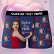 Each pair of boxer shorts can be personalized with your desired text.