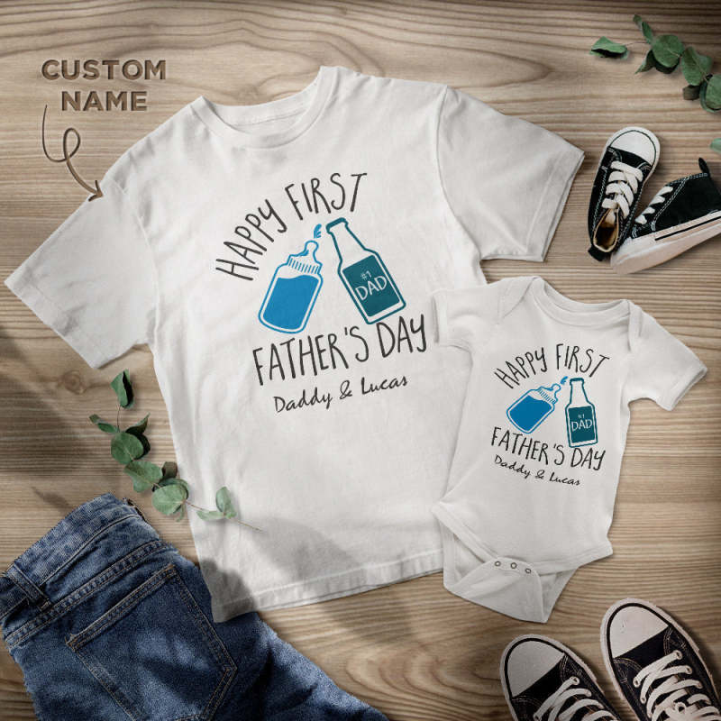 Custom Name Shirt Personalized Daddy And Baby Matching Outfits Happy First Father's Day Gift