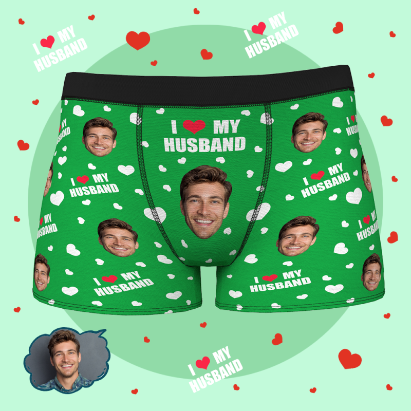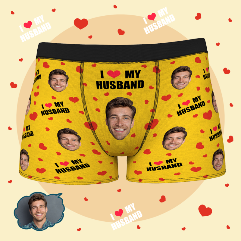 Custom Personalised Face Boxers Briefs for Men Husband Underwears - I LOVE MY HUSBAND