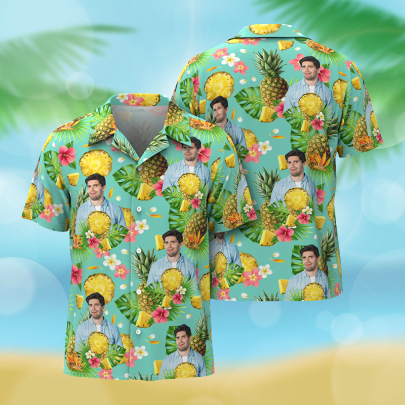 Custom Photo Hawaiian Shirt With Tropical Design Custom Face Hawaiian Shirt