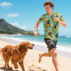 - Our Hawaiian shirt is made of 95% polyester + 5% spandex, which makes it cooler to wear.