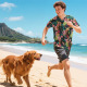 - Our Hawaiian shirt is made of 95% polyester + 5% spandex, which makes it cooler to wear.