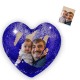 Custom Photo Magic Heart Sequins Pillow - Blue