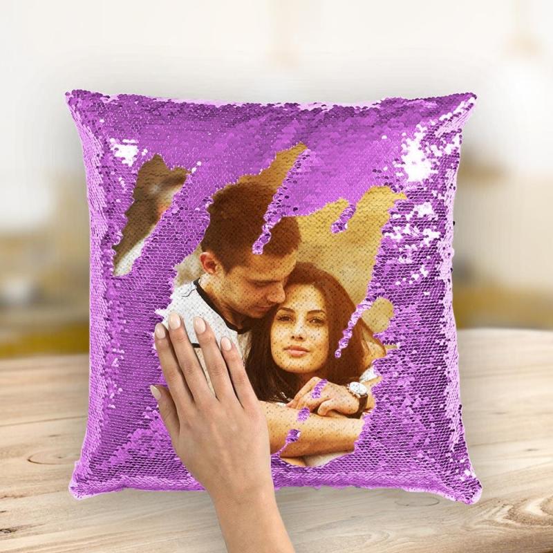 Custom Photo Magic Sequins Pillow - Purple - 15.75in x15.75in