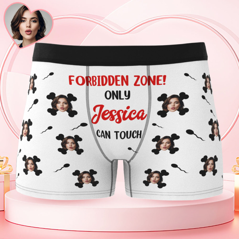 Custom Photo Men Boxer Briefs, Forbidden Zone Only Girlfriend Can Touch Underwear Men, Gifts For Valentine's Day, Wedding Anniversary Gift