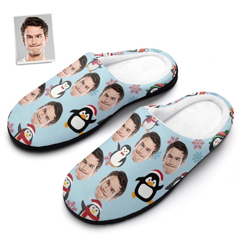 Custom Photo Women's Christmas Penguins Cotton Slippers