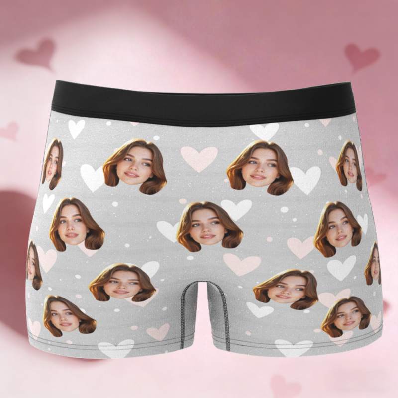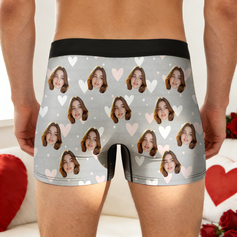 These personalized boxer briefs feature custom faces, cute heart and kiss patterns, and a bold, humorous love message—perfect for couples who enjoy laughter, romance, and a little cheeky fun.