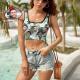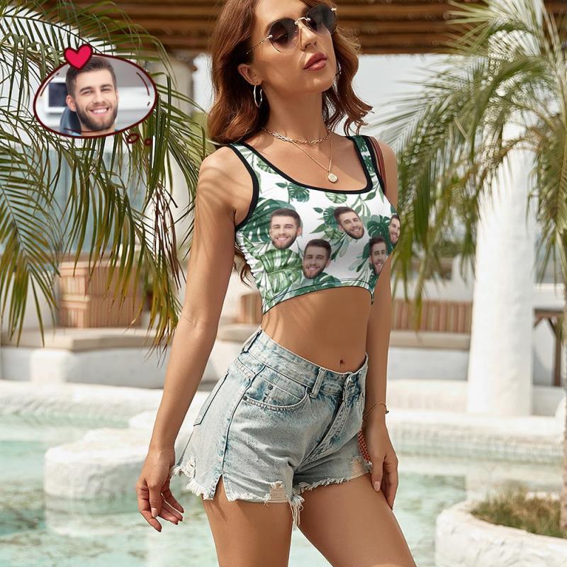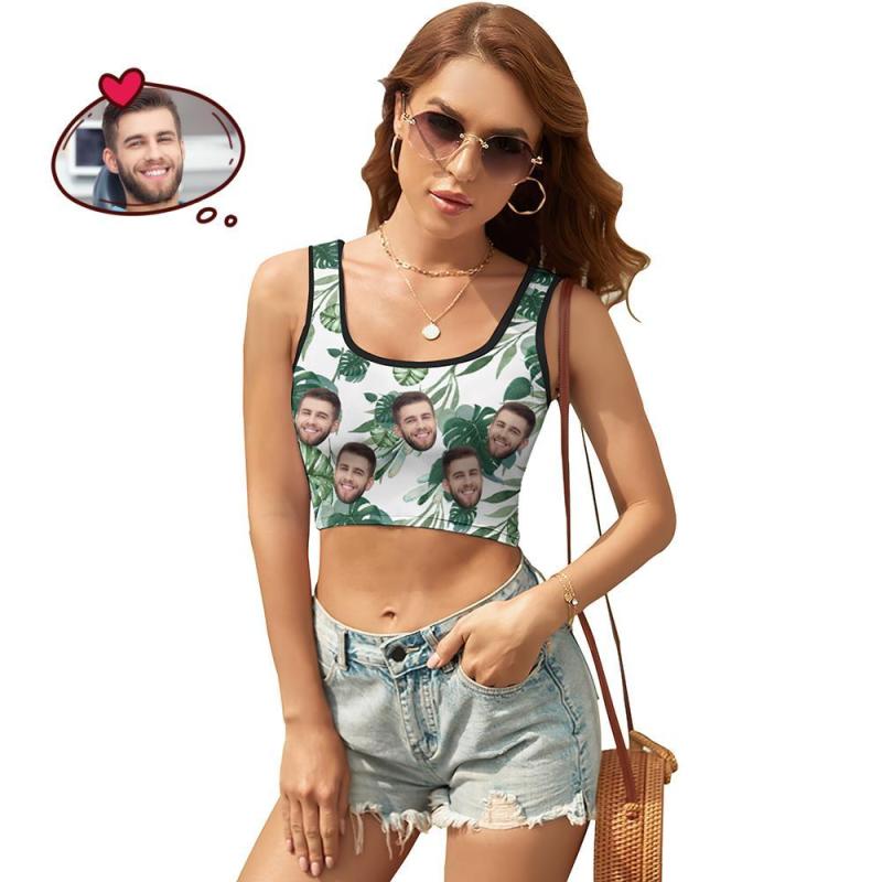 Custom Women's Photo Short Vest Personalised Face Tank Top Crop Top - Green Leaves