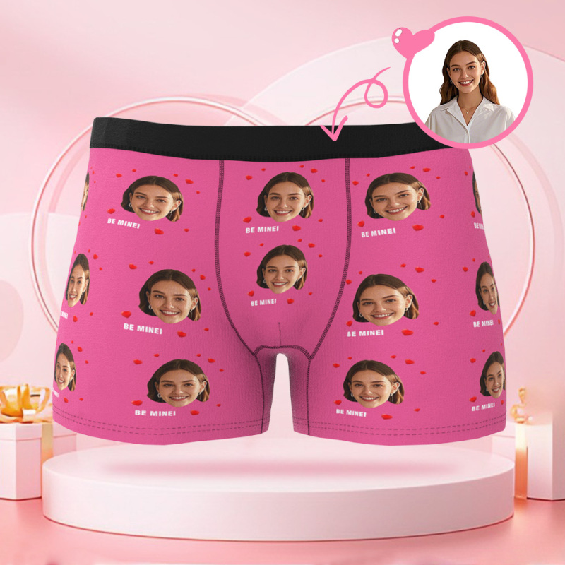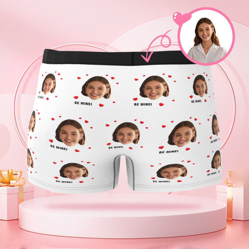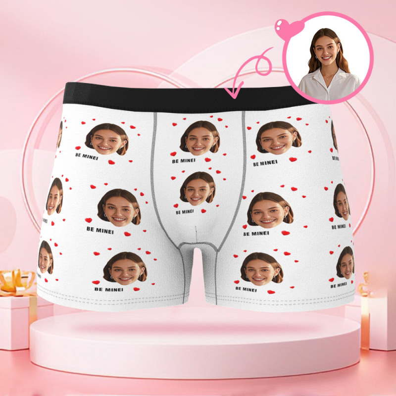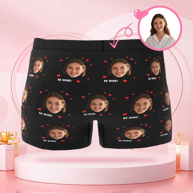 Customized Face Photo Avatar Men's Boxer Briefs with Multiple Heart Patterns, Boxer Gift for Boyfriend on Valentine's Day