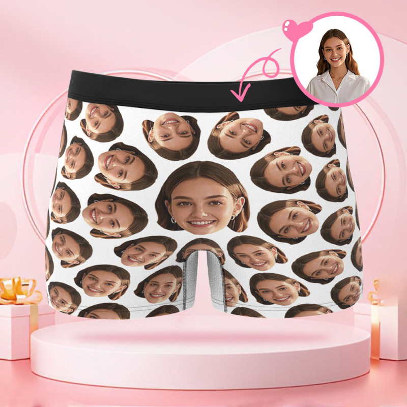 Customized Human Face Men's Boxer Briefs, Boxer Gift with Rotating Human Face, for Boyfriend on Valentine's Day