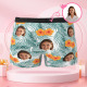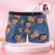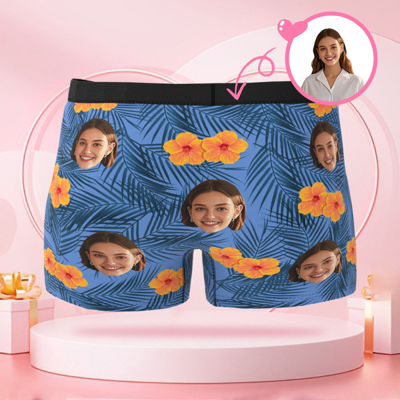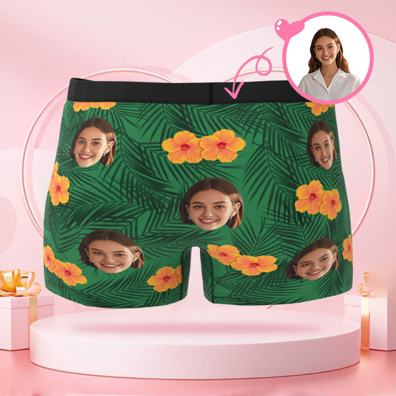 Customized Human Face Men's Boxer Briefs, Surprise Gift for Boyfriend on Valentine's Day with Flowers and Leaves