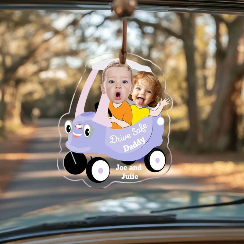 Kid Face Toy Car Drive Safe Daddy Baby Photo Face Father's Day Gift New Dad Gift 1st Fathers Day Gift For Him Two Photos