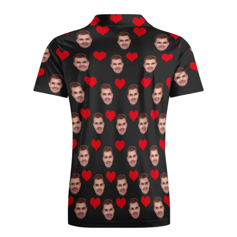 Men's Custom Face POLO Shirt Personalised Golf Shirts For Him Love Heart