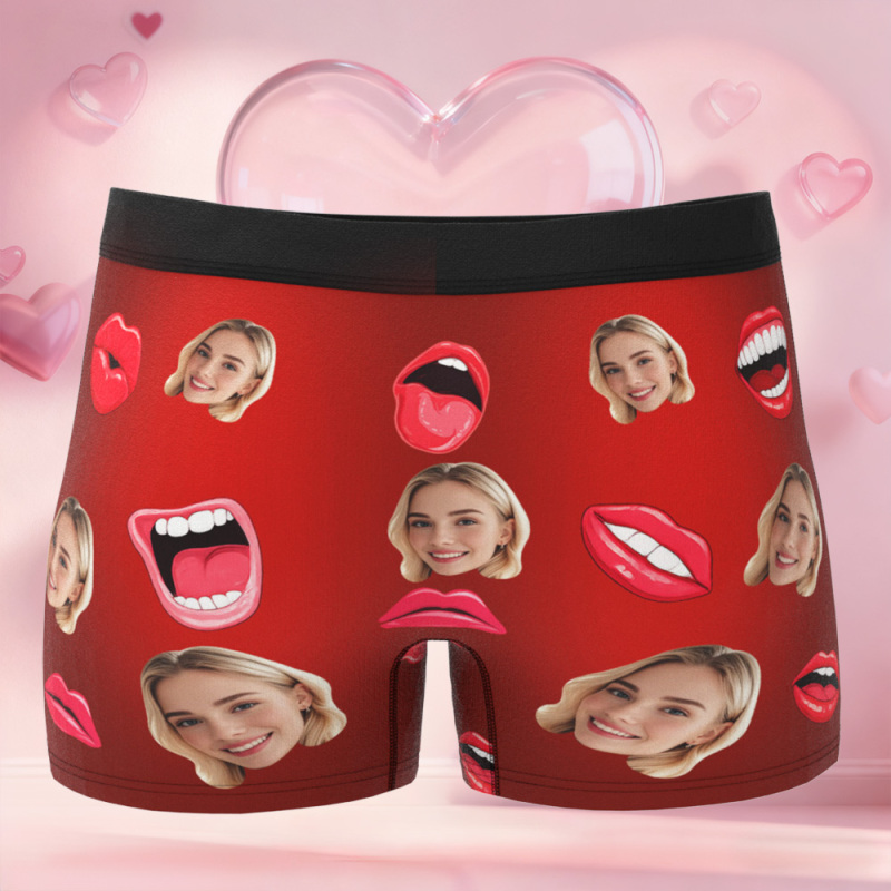 Personalized Face Boxer Briefs, Custom Photo Underwear, Heart Lover Men's Boxer, Anniversary Gift for Him, Valentine's Day Gift