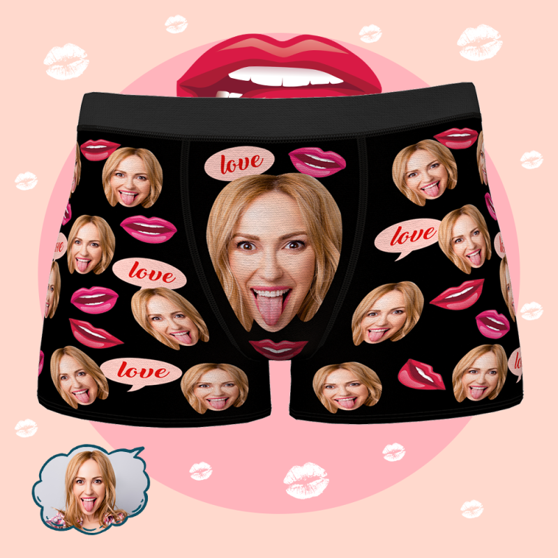 Personalised Face Boxer Custom Photo Underwear with Love and Red Lip prints custom underwear for man