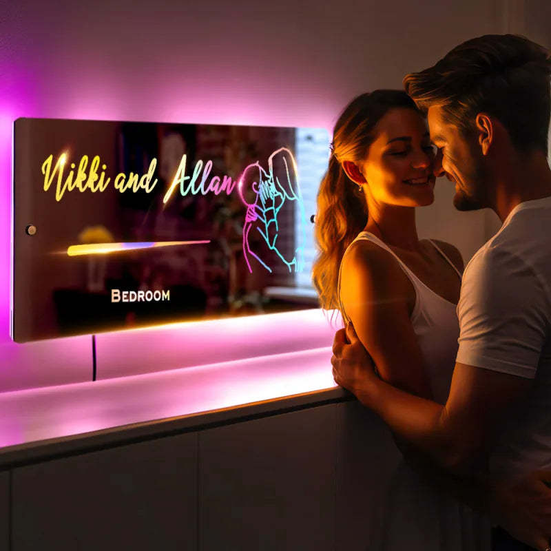 Personalized Line Photo Engraved Mirror Light Bedroom Sign Custom Mirror Neon Signs Wall Decor, Custom Name Sign for Bedroom,Christmas Valentine's Day