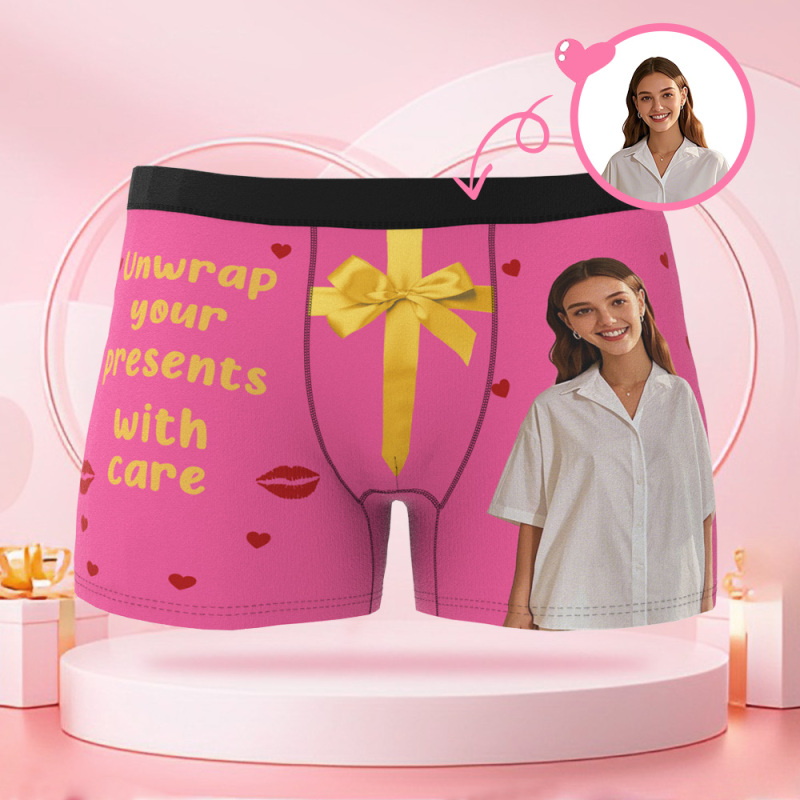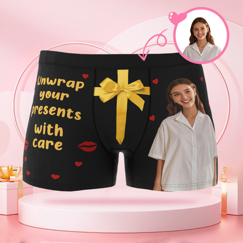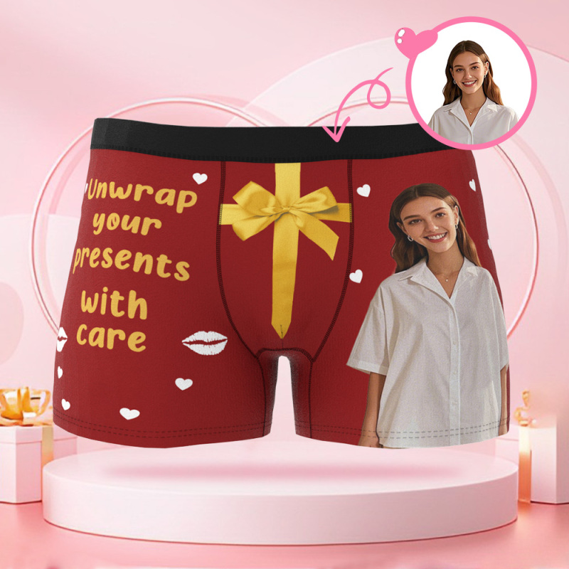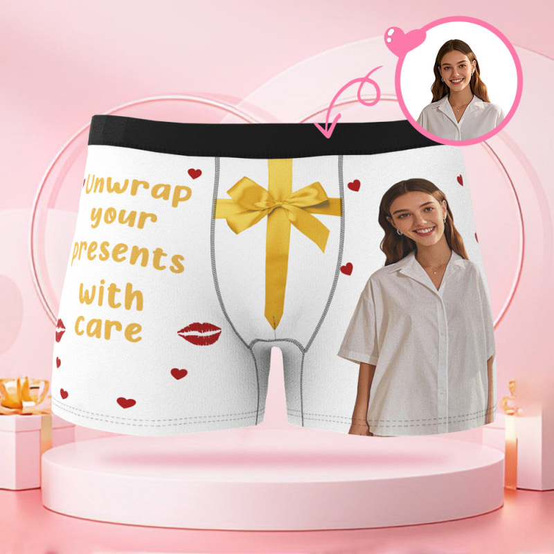 Personalized Photo Briefs with Gift Pattern, Valentine's Day Boxer Shorts with Personalized Face, Valentine's Day Gift for Boyfriend